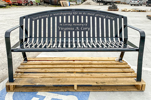 Last, the memorial bench is laser cut, welded, and powder coated. You can view all of our powder coating colors here.