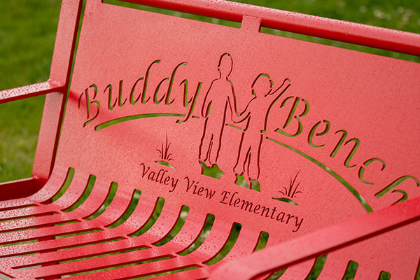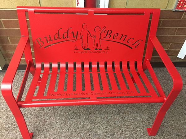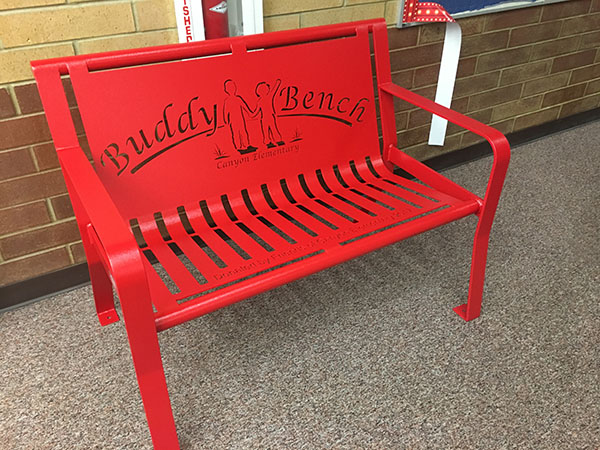Join the movement and add a Classic Buddy Bench to your school. Each Buddy Bench is available with vibrant powder coating colors (view here) and custom laser cut designs. We also offer three bench sizes to fit the needs of your school district. To order your custom bench, give us a call at (801) 960-6323 or click the link below.
