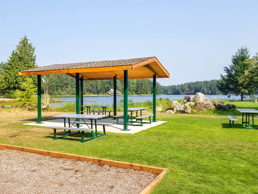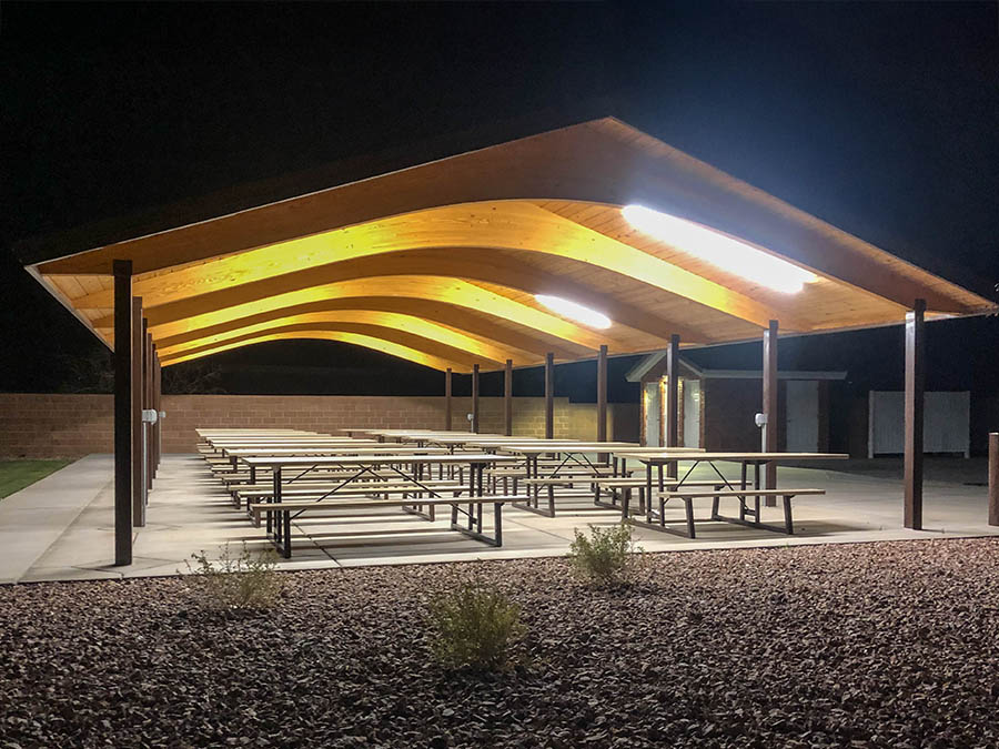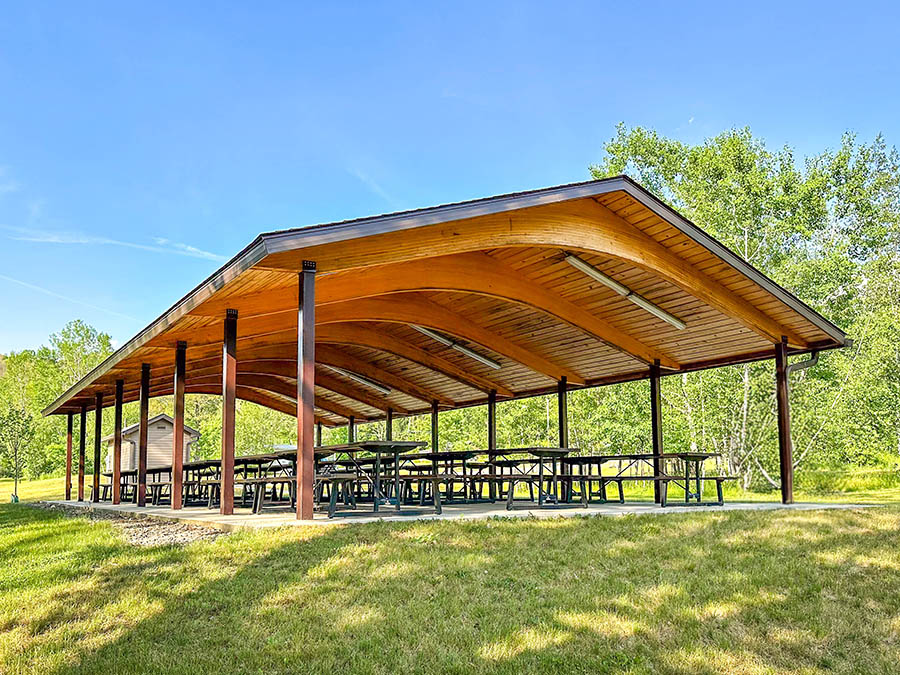 Our glulam pavilions are a beautiful and durable solution for campgrounds, parks, event spaces, and other outdoor gathering areas. Built with high strength glue laminated beams, our glulam pavilions are available in a wide range of finishes, sizes, and structural designs. Each pavilion is made to order and fully customizable to meet your site’s exact needs. As the manufacturer, we provide full design flexibility and in house production. Every glulam pavilion package includes everything from anchor bolts to roofing and electrical components, along with stamped engineering drawings for your project.