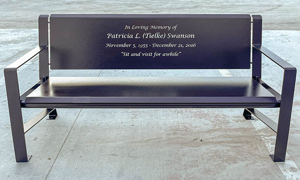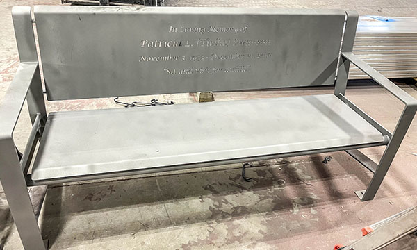 To begin, call or email your ideas for the bench. Choose from our three bench styles, sizes, and powder coat finishes. Likewise, include wording, photos, etc. that you would like included on the bench back.