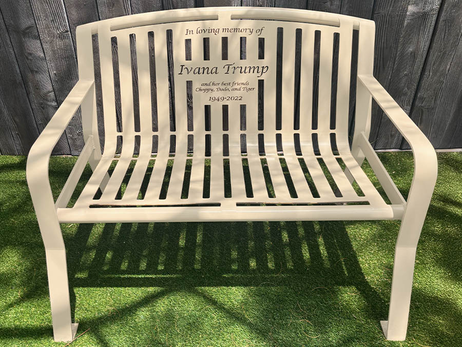 Each bench is made to order but usually fall into one of these three categories: wording only, wording & artwork, or wording & face.