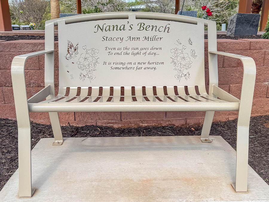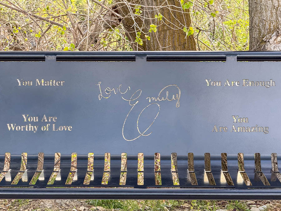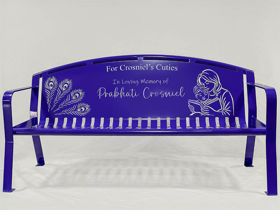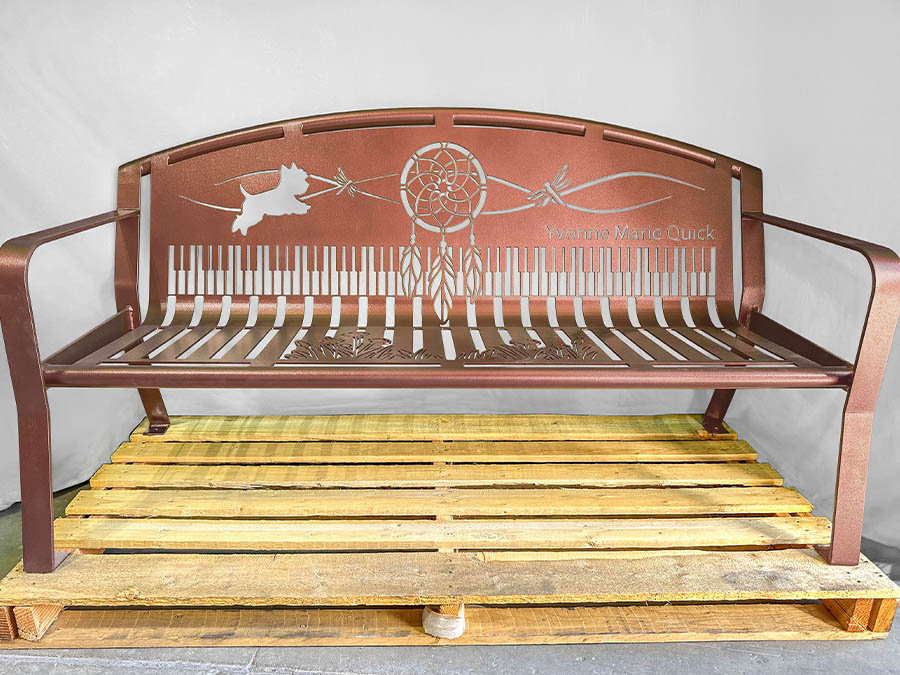 The Memorial Bench is a perfect way to commemorate your loved ones in a unique way. We offer Memorial Benches and Memorial Swings with personalized laser-cut designs, including portraits, inscriptions, and more. Our team will guide you to create the memorial bench you envision. To get started on your metal bench order, click the link below or give us a call at (801) 960-6323.