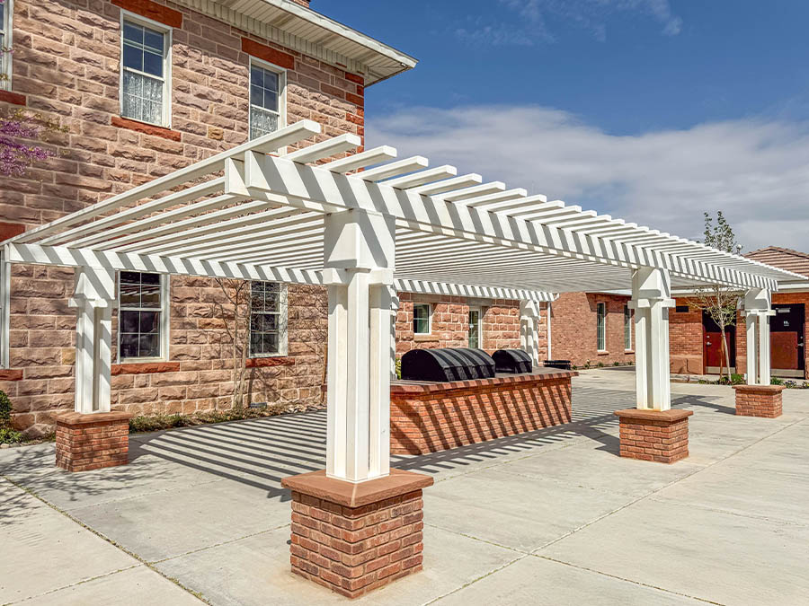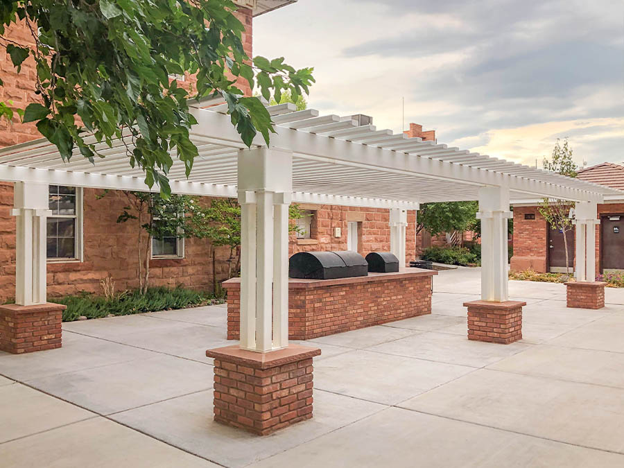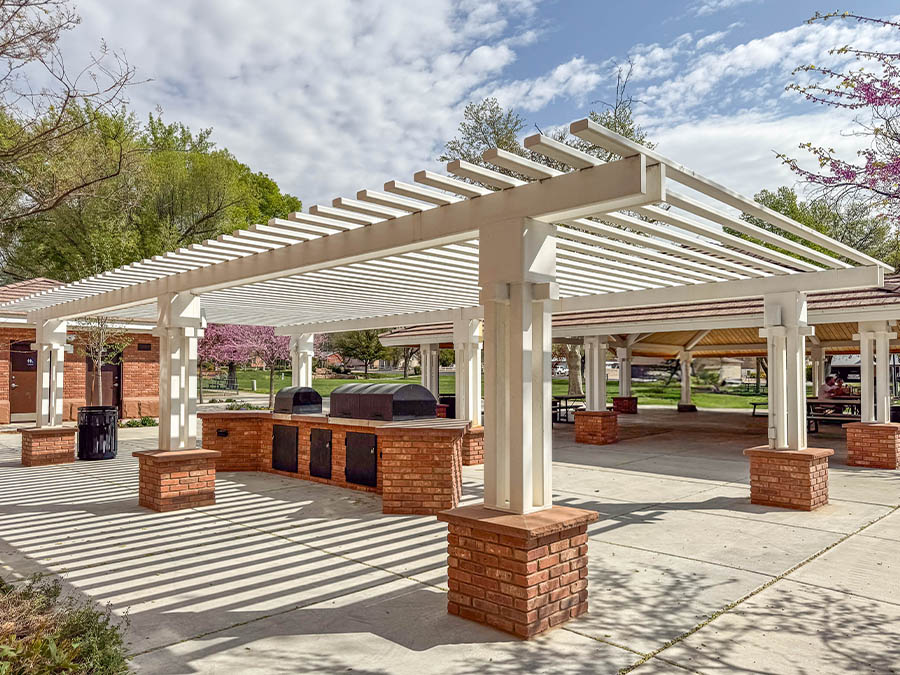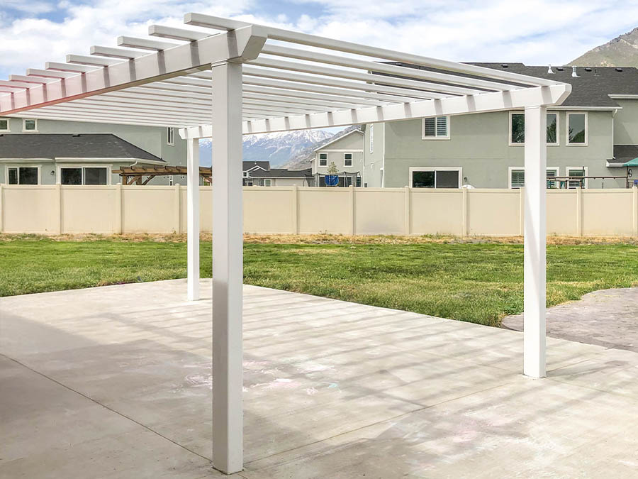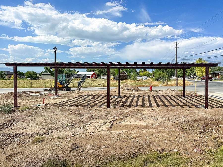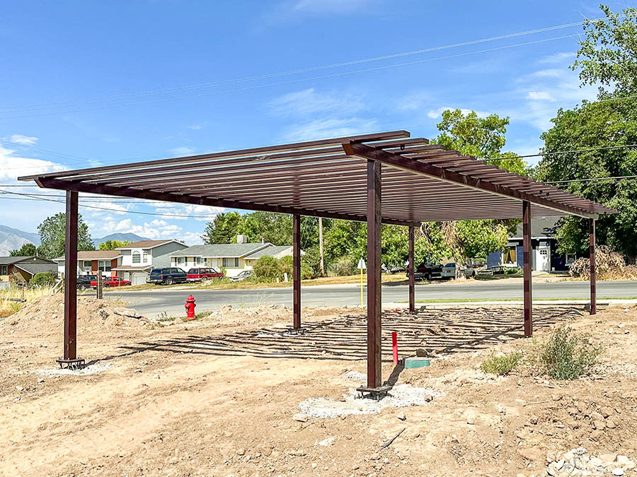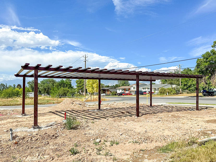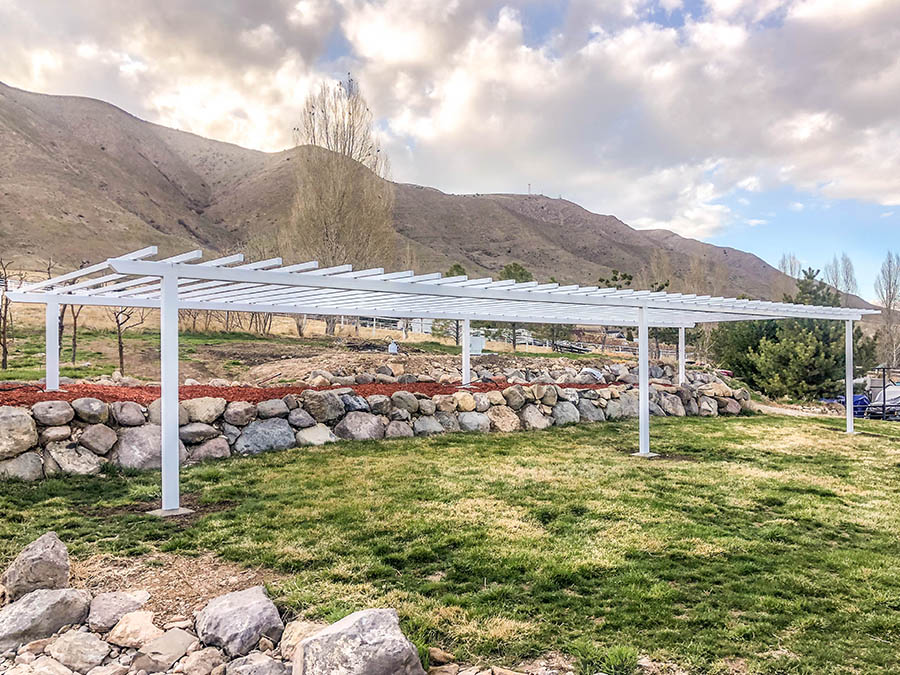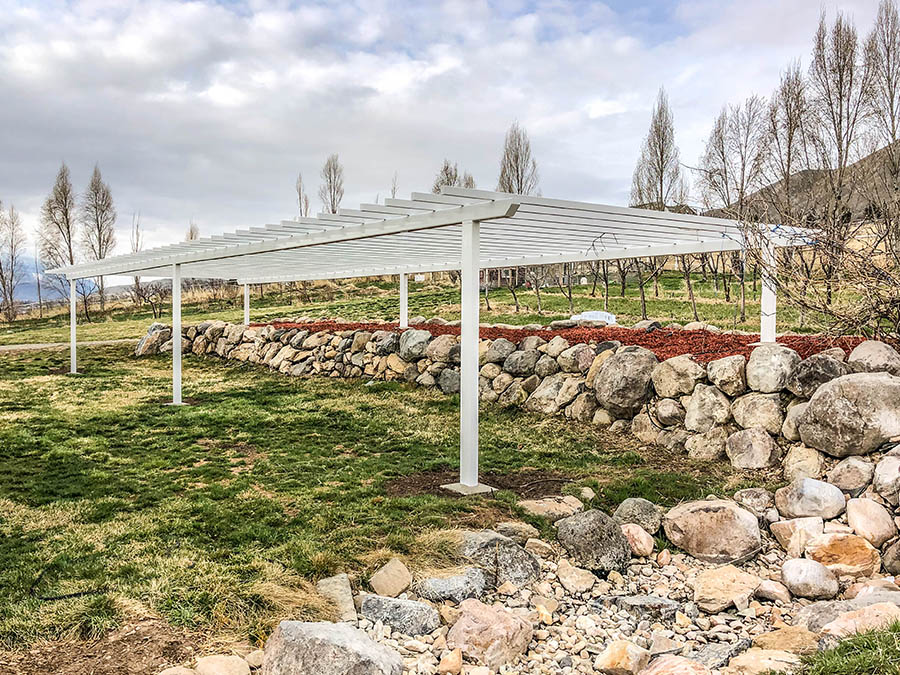 Our custom pergolas are designed to enhance gardens, walkways, and a variety of outdoor spaces. Each metal pergola features cross beams and an open lattice design, creating both structure and visual interest. Custom sizes and color options are available for every project. Call (385) 225-4644 to get started on your pergola order, and be sure to explore our pavilion options as well.
