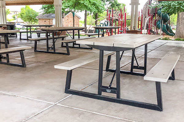 The Recycled Plastic Picnic Table provides an eco-friendly option for community parks. Each table is constructed from angled legs to prevent tipping from uneven surfaces and unequal distributions of weight. This keeps the picnic table safe for the entire family to enjoy. To get started on your order, give us a call today at (801) 960-6323.