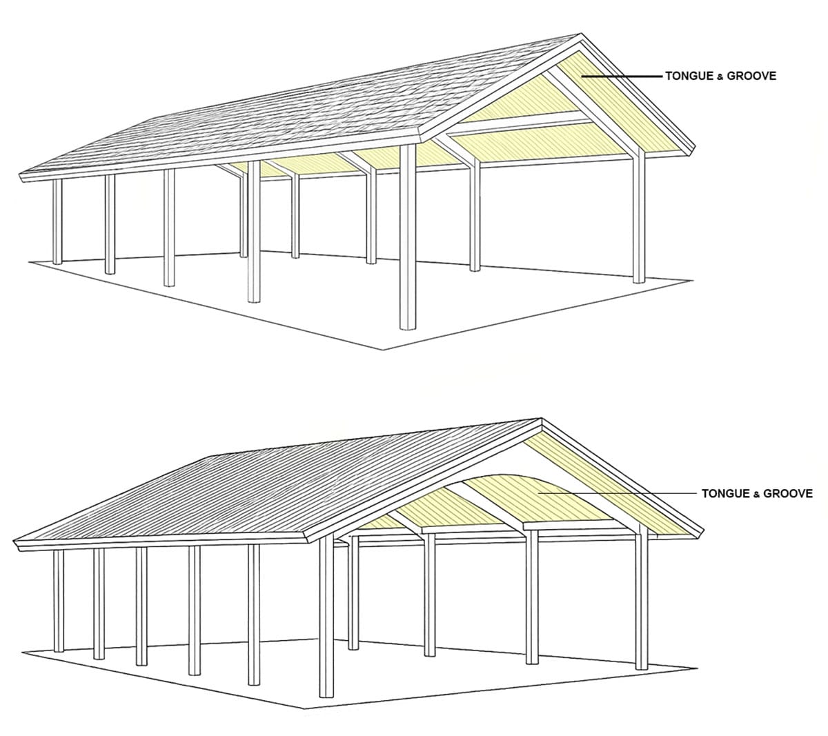 Tongue and groove refers to precision milled wood planks that interlock along the ceiling to create a smooth, seamless surface. This finish adds warmth and gives the pavilion a high quality architectural look.
